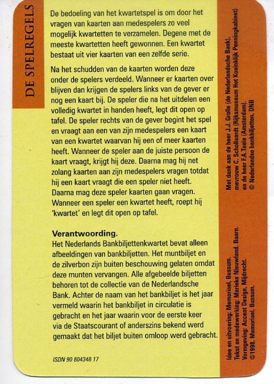 Met dank aan de heer J.J. Grolle (de Nederlandsche Bank) mevrouw C. Schollaardt (Rijksmuseum het Koninklijk penningkabinet) en de heer F.A. Toele (Amsterdam) Nederlandse Bankbiljetten, DNB