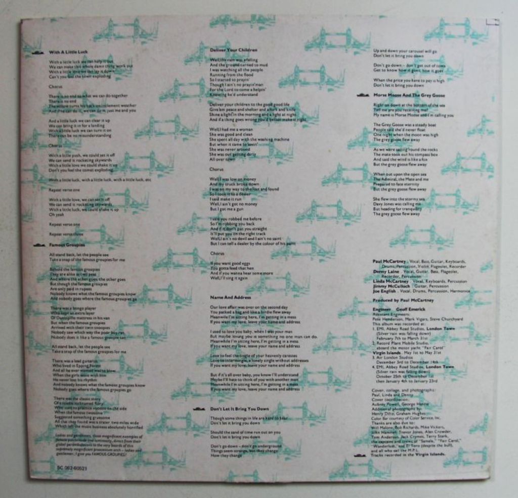 Paul Mccartney Wings – London Town 14 nrs LP + Poster 1978 ZEER MOOI