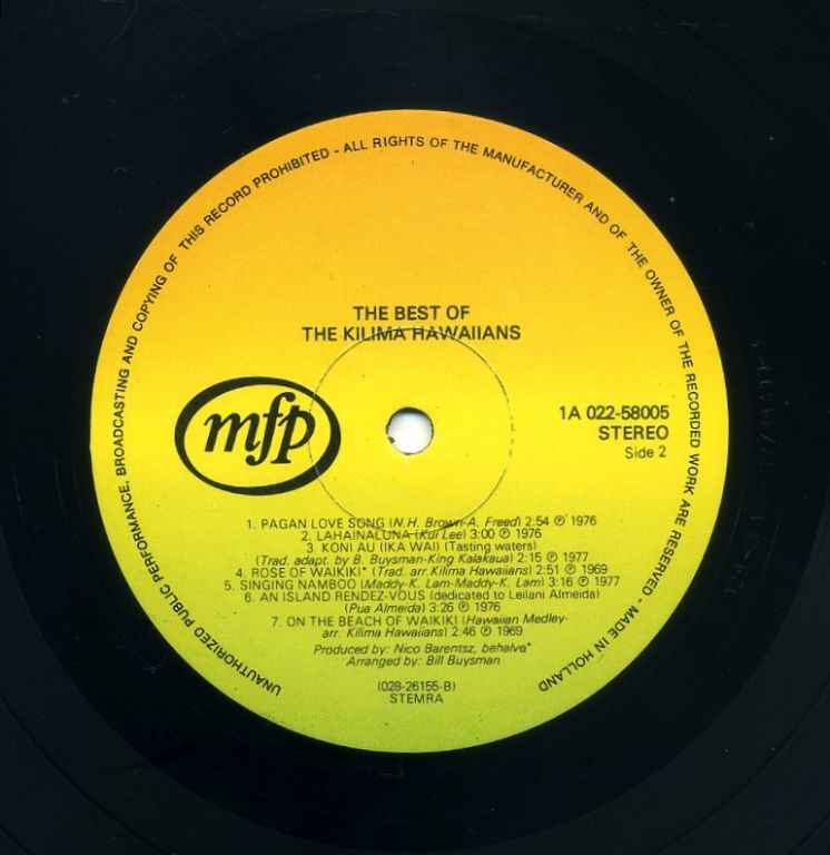 The Kilima Hawaiians The Best Of 14 nrs LP 1980 ZGAN