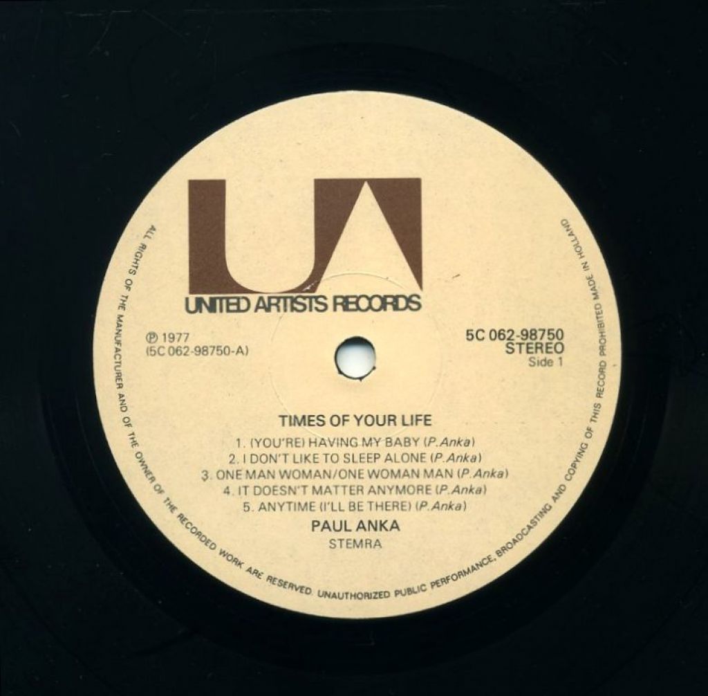 Paul Anka – Times Of Your Life 10 nrs LP 1977 ZGAN