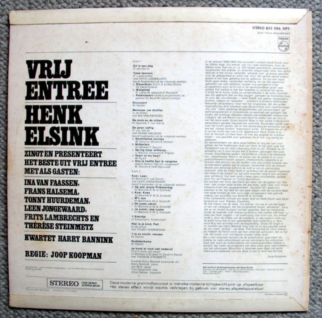 1) Vrij Entree 25 nrs Philips 855 086 XPY 1968 cabaret pop