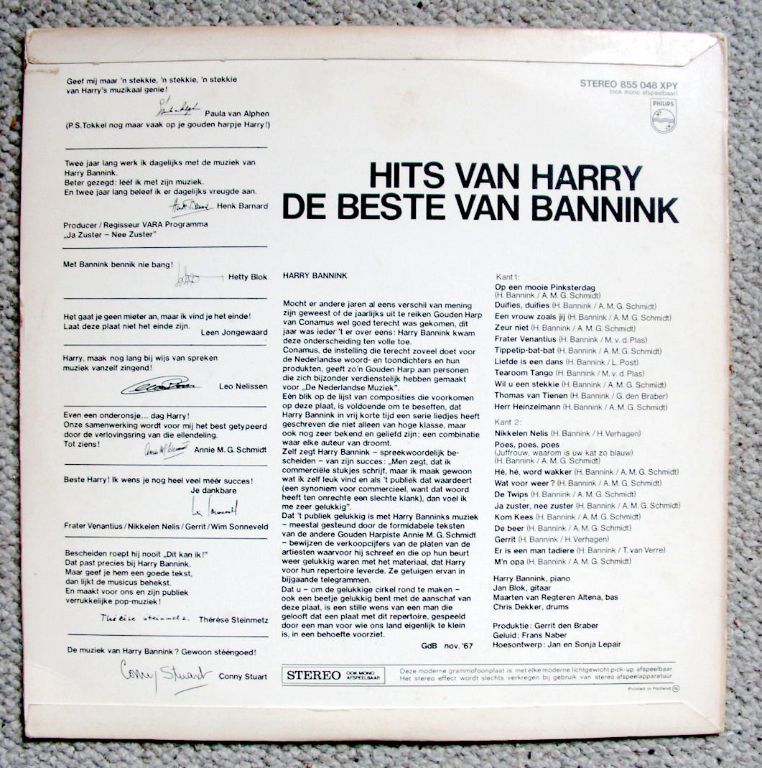 Harry Bannink - Hits Van, De Beste Van 22 nrs LP 1967 ZGAN