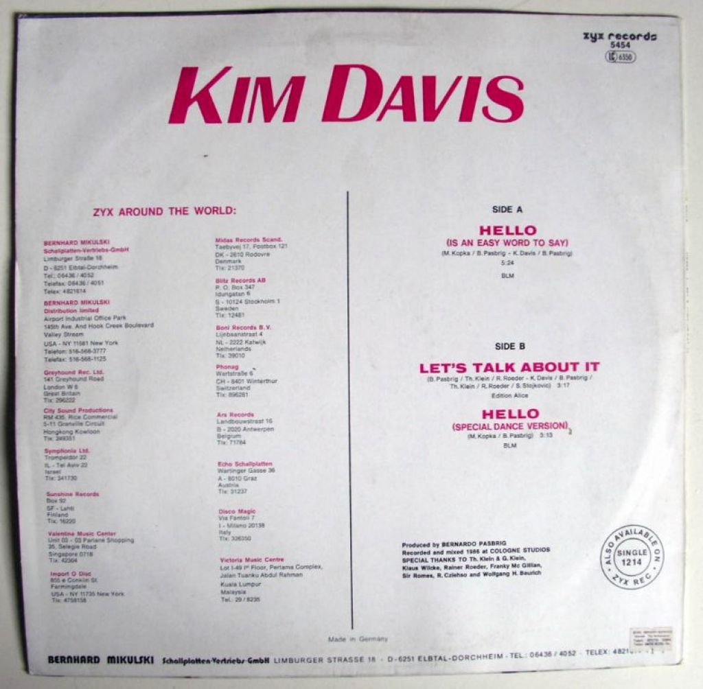 Kim Davis Hello 3 nrs 12" Maxi Vinyl Single 1986 mooie staat