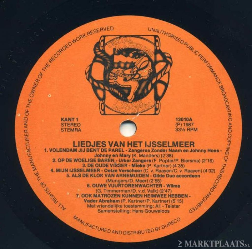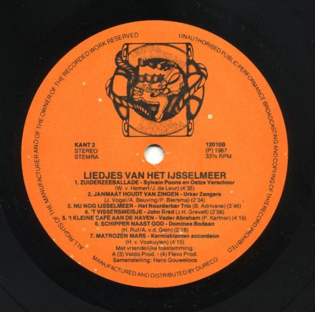 Deze LP met maar liefst 14 ballades over het IJsselmeer en de bewoners van de dorpen rondom dit meer, zoals b.v. Volendam / Arnemuiden