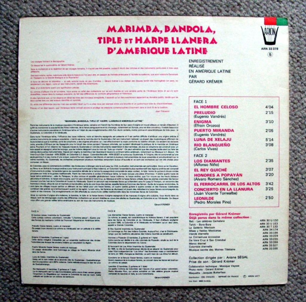 Gérard Krémer – Marimba, Bandola, Tiple Et Harpe Llanera D'Amerique Latine 12 nrs LP 1977 ZEER MOOIE STAAT