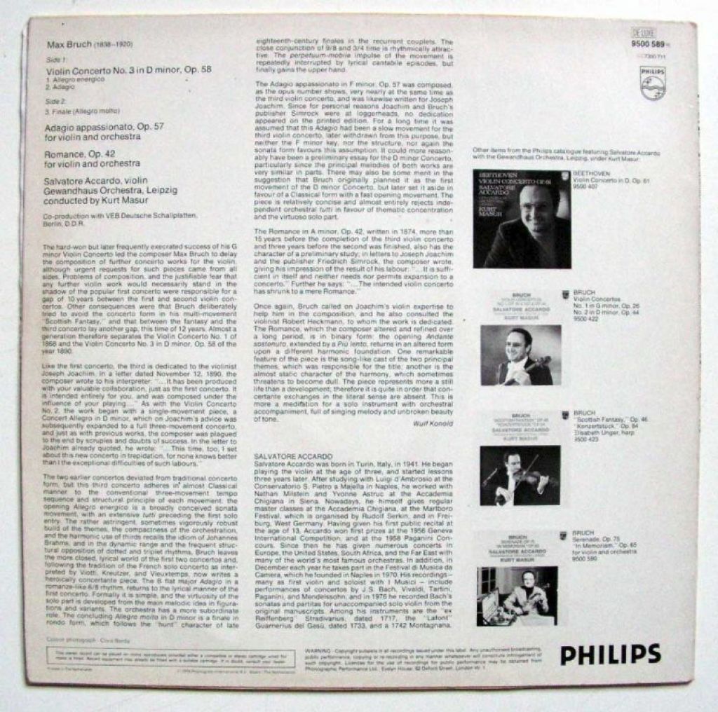 Bruch, Accardo, Gewandhaus Orchestra Leipzig, Kurt Masur LP