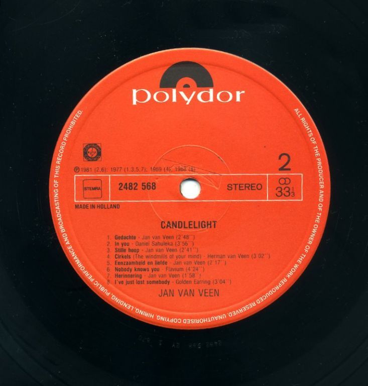 Jan Veen - Candlelight 16 nrs LP 1982 ZGAN