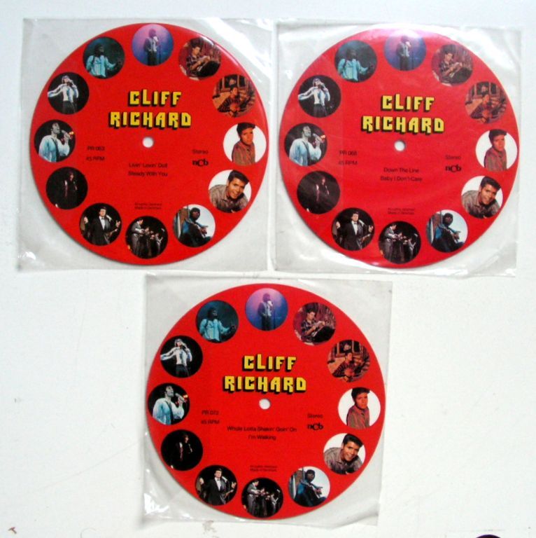 Cliff Richard 3 verschillende 7” Card Backed Picture Discs ZGAN