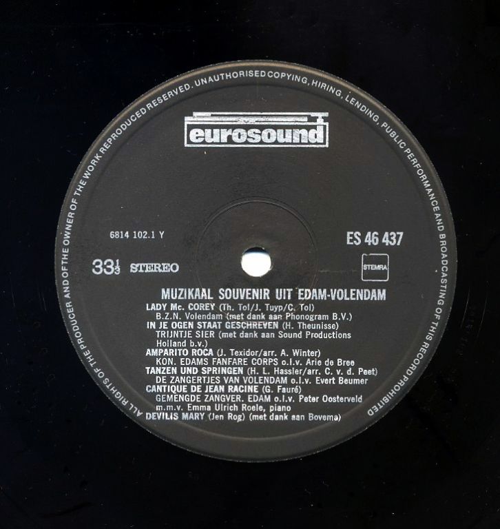 Muzikaal souvenir uit Edam - Volendam 12 nrs LP 1979 ZGAN