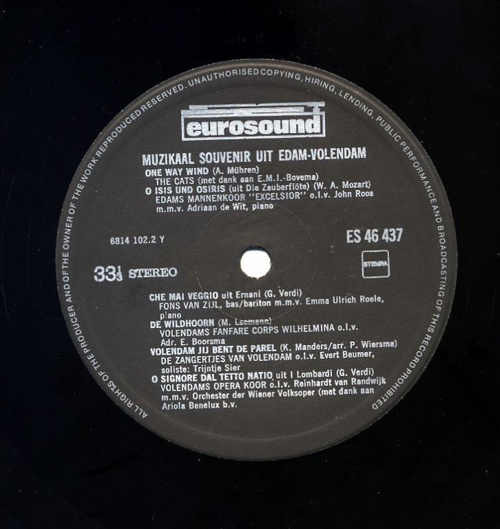 Muzikaal souvenir uit Edam - Volendam 12 nrs LP 1979 ZGAN
