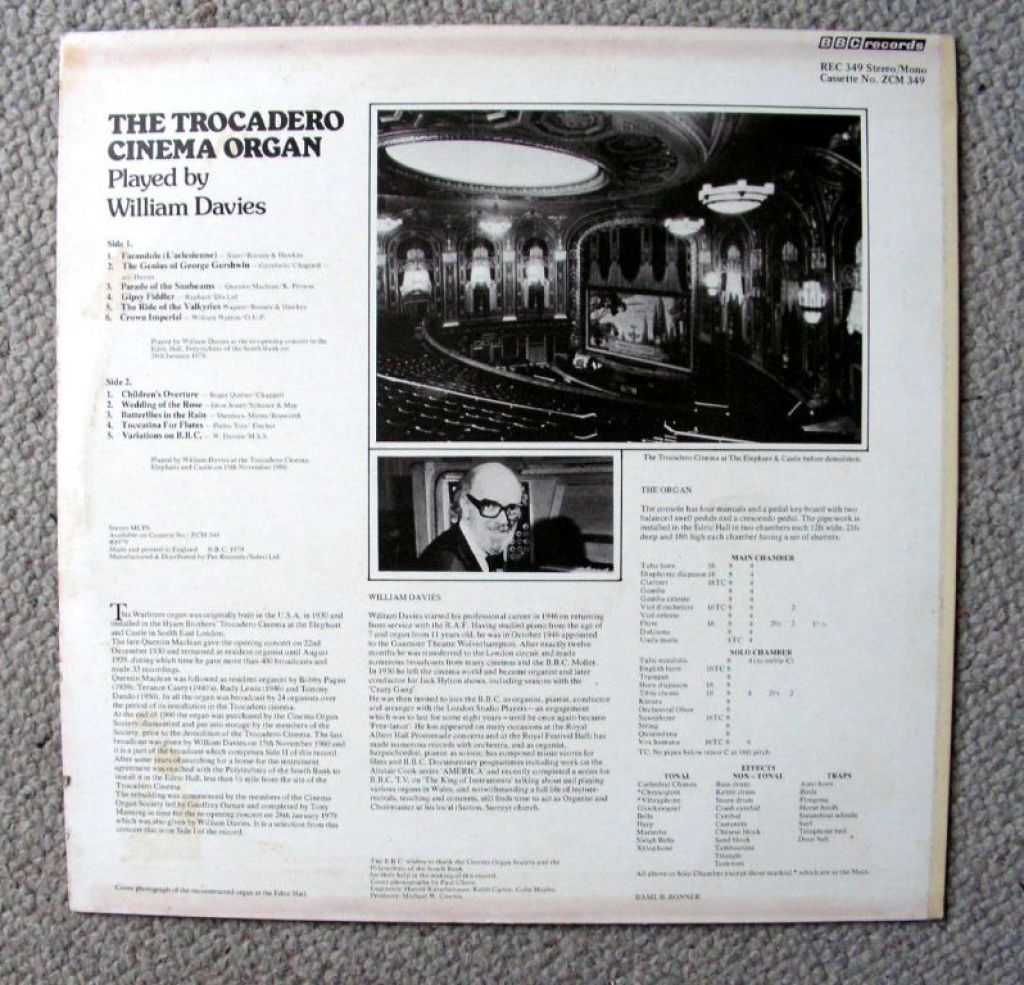 The Trocadero Cinema Organ 11 nrs LP 1979 ZEER MOOIE STAAT