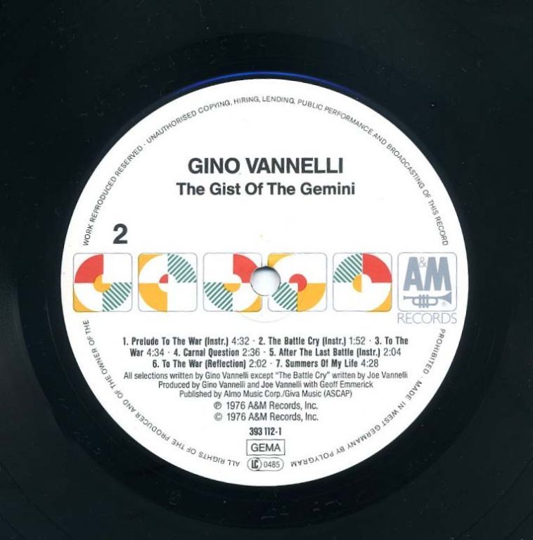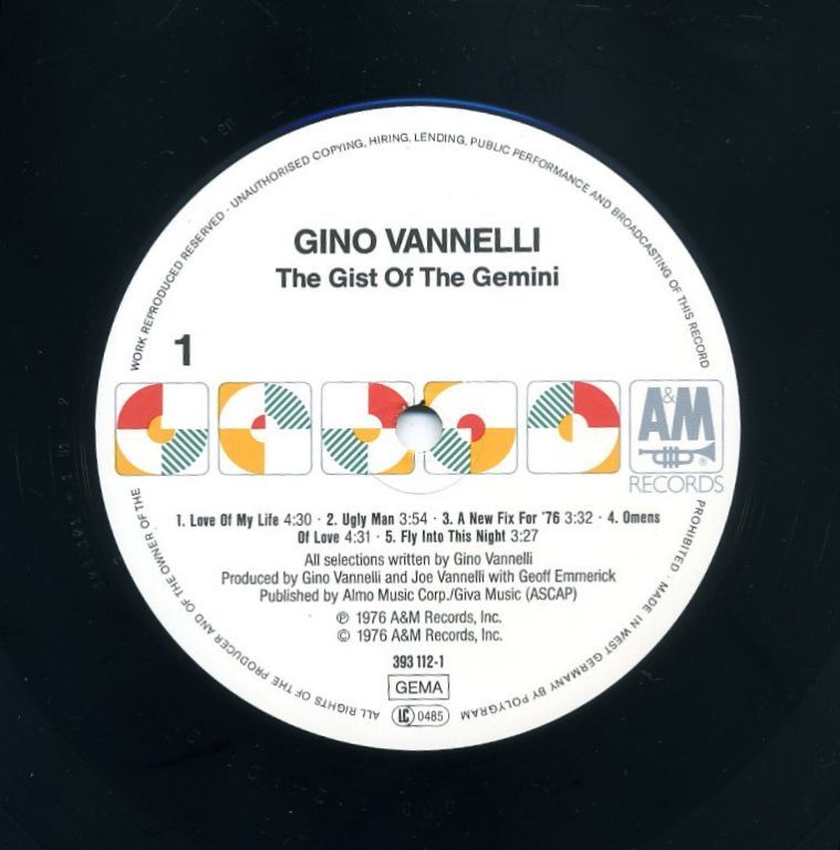 Gino Vannelli The Gist of The Gemini 12 nrs lp 1976 ZGAN