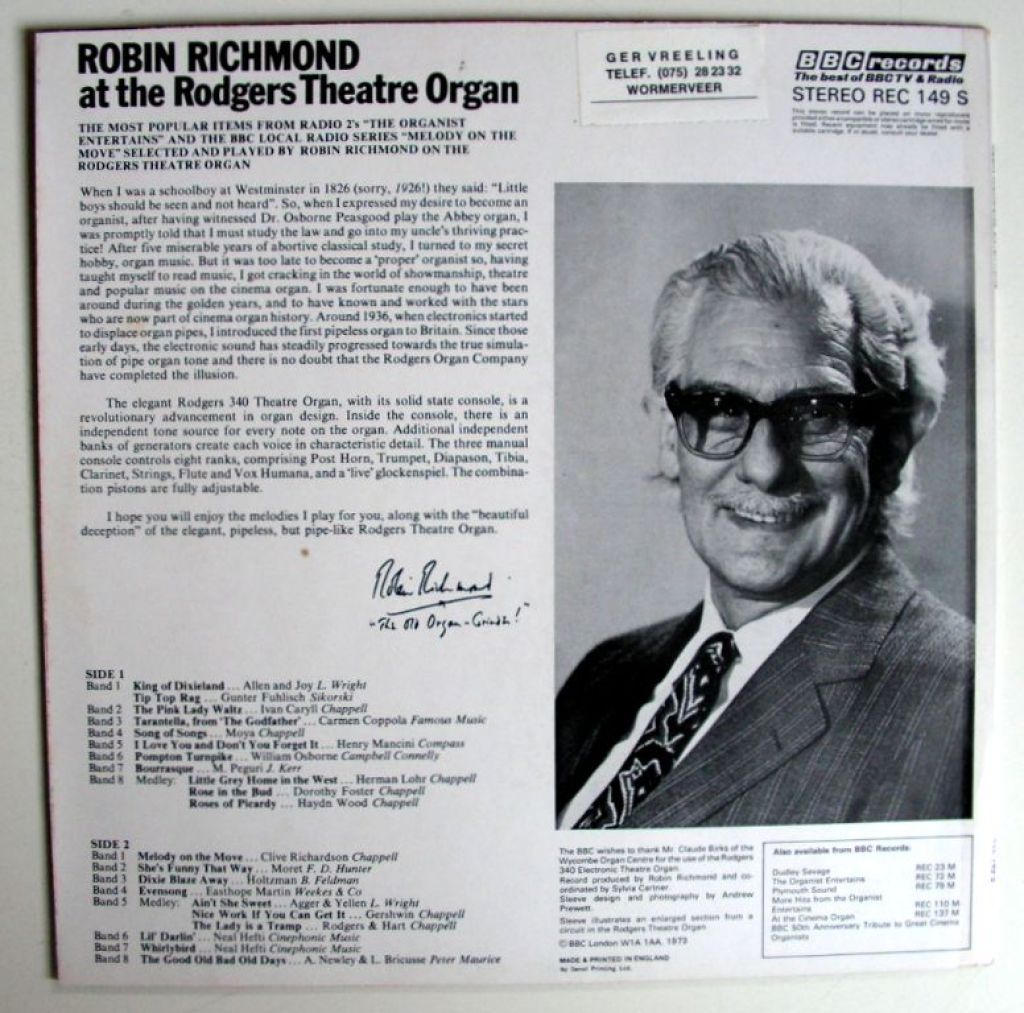 Robin Richmond Entertains At The Rodgers Theatre Organ 16 nrs LP 1973 ZGAN