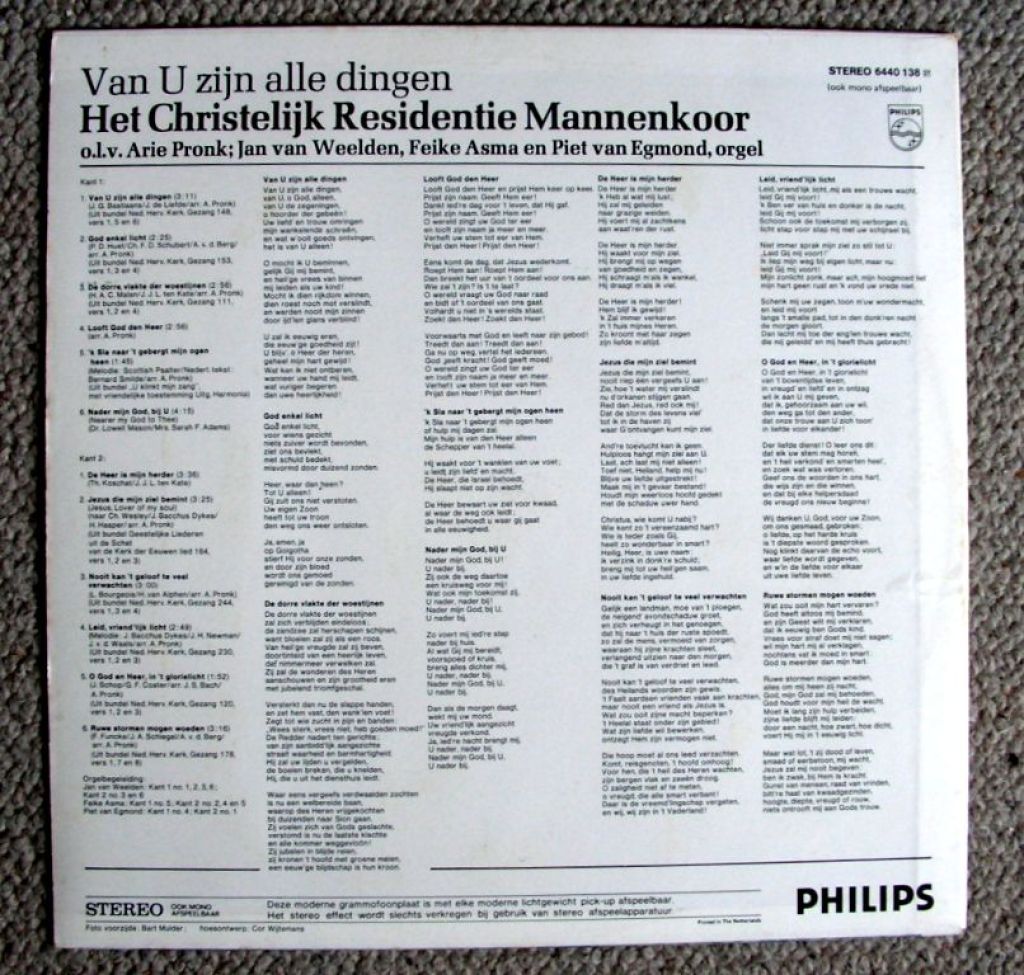 Het Christelijk Residentie Mannenkoor – Van U Zijn Alle Dingen 12 nrs LP 1973 ZGAN