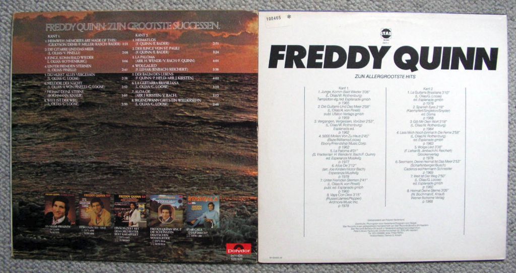2. Freddy Quinn – zijn allergrootste hits 16 nrs Star Record 9911-1 made in HOLLAND 1987