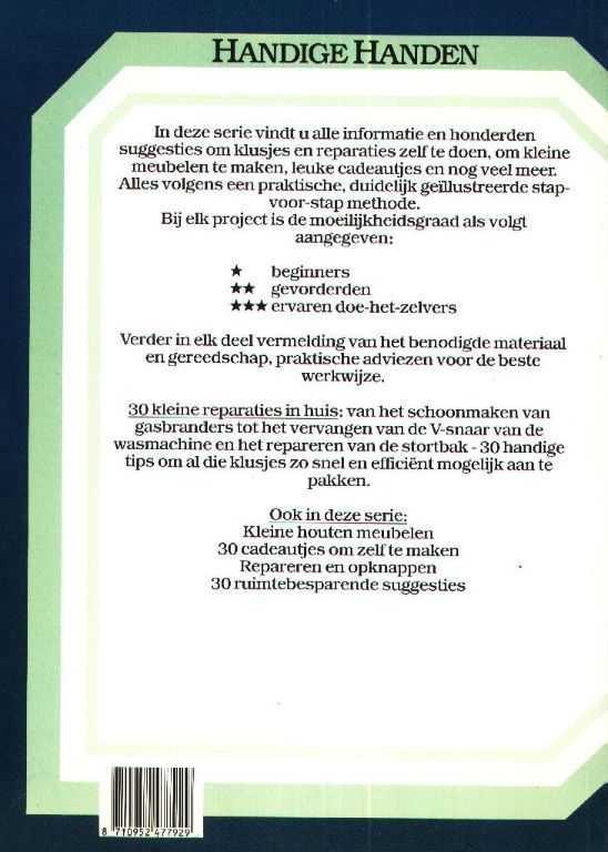 In dit boek vindt u alle informatie en honderden suggesties om klusjes en reparaties zelf te doen.