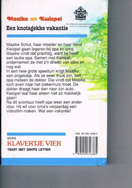 Door Jacky van Klaveren. Uitg. Kluitman. 3e druk. Groter lettertype. Wit papier. 122 pagina's. De achterste twee schutbladen zijn wat korter. Verder in zeer goede staat. Gewicht 163 gram. Verzendkosten vanaf € 3,64. Prijs € 2,50.