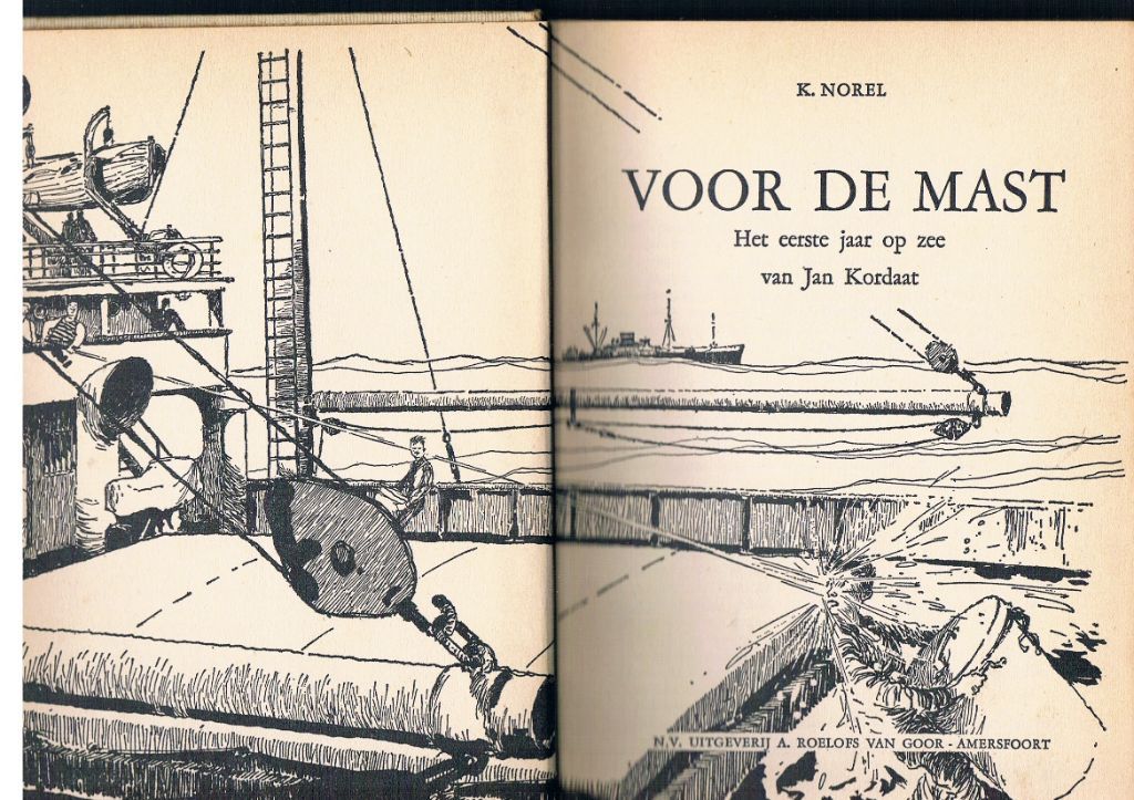 Uitg. A. Roelofs van Goor. Toevoeging bij titel: Het eerste jaar op zee van Jan Kordaat. Gebonden. Kennelijk een eerste druk van 1963. Illustraties door Rein van Looy. 176 pagina's. Aan de achterzijde zie ik bij de rug onderaan een scheurtje van ca. 8 mm. En de rug zal een beetje verschoten zijn. Maar het boek is dermate stevig, dat het de afgelopen 57 jaar goed heeft doorstaan. Dikte 2,3 cm. Gewicht 413 gram. Een vrij zeldzaam boek. Verzendkosten vanaf € 3,95. Prijs € 9,95.