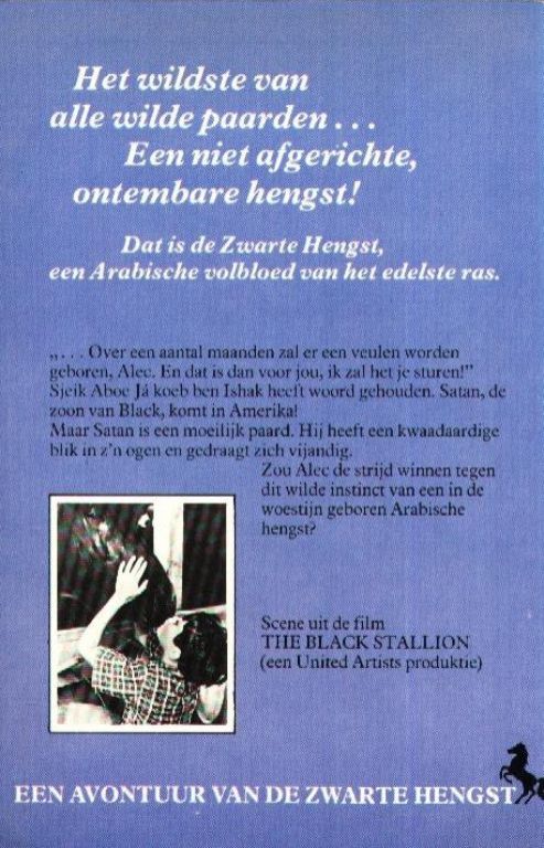 Dat is de Zwarte Hengst, een Arabische volbloed van het edelste ras.