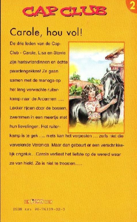 Cap Club dl 2 - Carole hou vol! (andere uitgave)De drie leden van de Cap-Club - Carole, Lisa en Stevie zijn hartsvriendinnen en echte paardengekken! Ze gaan samen met de manege op het lang verwachte ruiterkamp naar de Ardennen... ...
