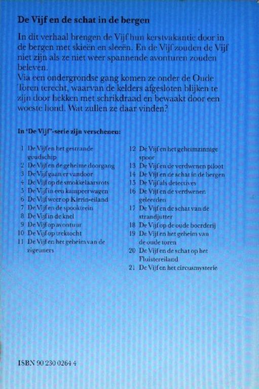 In dit verhaal brengen de Vijf hun kerstvakantie door in de bergen met skiën en sleeën.