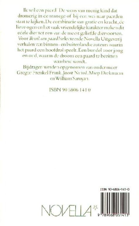 Voor: Ik wil een paard! selecteerde Novella Uitgeverij verhalen van binnen-en buitenlandse auteurs waarin het paard een hoofdrol speelt.