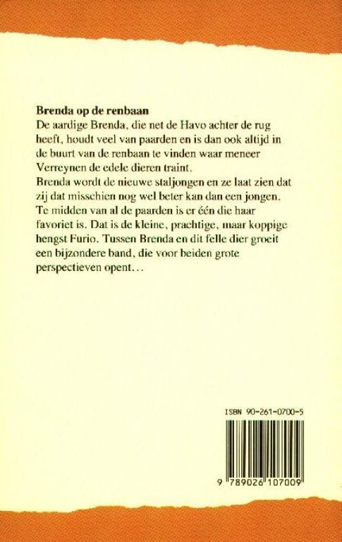 De aardige Brenda, die net de HAVO achter de rug heeft houdt veel van paarden en is dan ook altijd in de buurt van de renbaan te vinden waar meneer Verreynen de edele dieren traint.