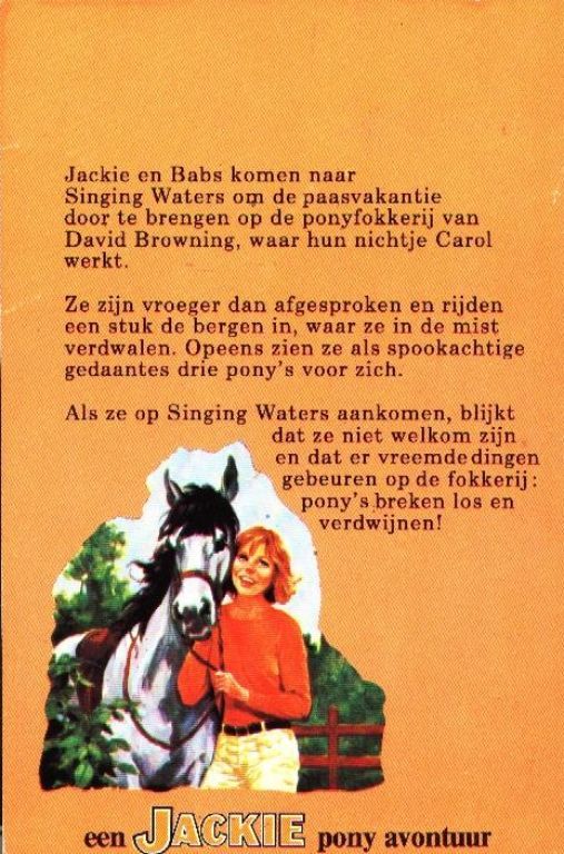 Jackie en Babs komen naar Singing Waters om de paasvakantie door te brengen op de ponyfokkerij van David Browning, waar hun nichtje Carol werkt.