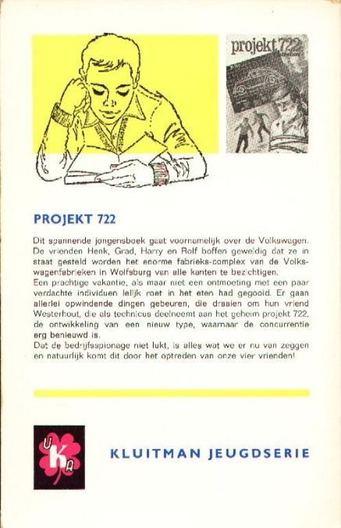 Er gaan allerlei opwindende dingen gebeuren, die draaien om hun vriend Westerhout. die als technicus deelneemt aan het geheim projekt 722, de ontwikkeling van een nieuw type, waarnaar de concurrentie erg benieuwd is.