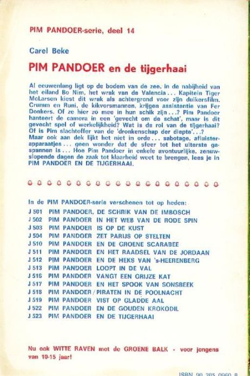 Hoe Pim Pandoer in enkele avontuurlijke, zenuwslopende dagen de zaak tot klaarheid weet te brengen, lees je in Pim Pandoer en de Tijgerhaai.