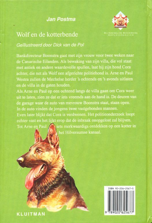 Als bewaking van zijn villa, die vol staat met antiek en andere waardevolle spullen, laat hij zijn hond Cora achter, die net als Wolf een afgerichte politiehond is.