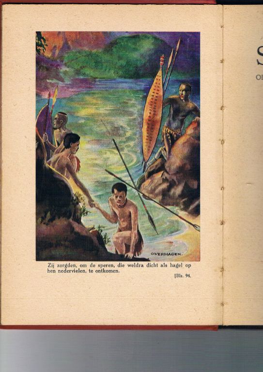 Uitg. G.B. van Goor. 1927. Eerste druk. Origineel gebonden. Dat betekent, dat als het boek wordt open geslagen, het zo blijft liggen en niet dicht klapt, zoals bij de moderne paperbacks. Het boek is voor zijn leeftijd van ruim 95 jaar nog in zeer goede staat. Volgens de uitgever is het boek bedoeld voor jongeren van 12 jaar en ouder. Hoewel het boek dus bedoeld is als een soort avonturenroman, lijkt het mij zinvoller om het te beschouwen als een soort geschiedenisboek, teneinde de situatie van de negers en de Boeren beter te kunnen begrijpen.