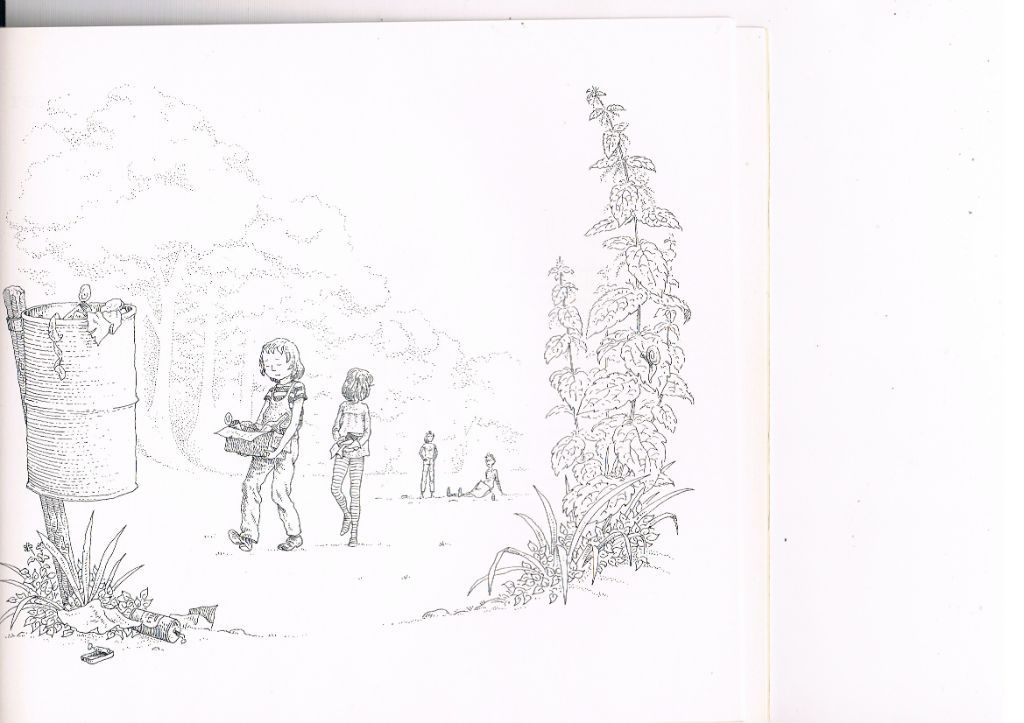 Uitg. CPNB. 1975. Ingenaaid. Formaat 22,8 x 20,4 cm. 96 pagina's. Bijzonder mooie tekeningen, zowel gekleurd als ongekleurd. Op het oog ziet het boek er goed uit, maar ik zie twee schadepunten. Op de voorkaft zijn bij de namen wat schaafplekjes ontstaan, doordat er kennelijk wat onbesuisd stickers vanaf gerukt zijn. Verder bemerkte ik, dat pagina 24 en 25 een klein stukje aan elkaar waren gekleefd. Pogingen om e.e.a. los te maken waren geresulteerd in een scheurtje. Desalniettemin zijn het verhaal en de tekeningen zeker de moeite waard.