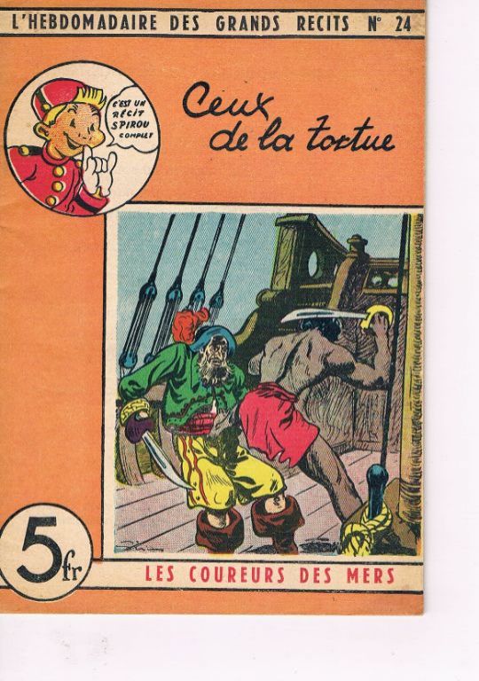 Uitg. Dupuis. Serie L'hebdomadaire des grands récits. Jaartal niet vermeld, maar ik taxeer dit omstreeks 1947 – 1950. Dit is nr. 24. Geniet boekje. Formaat 13,5 x 19,3 cm. 32 pagina's. Verlucht met een aantal tekeningen. Ongekleurd. Franstalig. Bedoeld voor de lezers van Spirou. Het is er kennelijk niet van gekomen deze boekjes ook in het Nederlands uit te brengen. Leuk, als u uw kennis van de Franse taal nog eens wilt ophalen met een spannend verhaal. Quasi nieuwstaat. Dit boekje is geïllustreerd door Sirius, de tekenaar en schrijver van de strips De Blauwe Sperwer en Timoer. Gewicht 26 gram. Verzendkosten vanaf € 2,02 zonder track & trace of € 3,95 met t & t. Voor dit relatief zeldzame boekje vraag ik € 19,50.