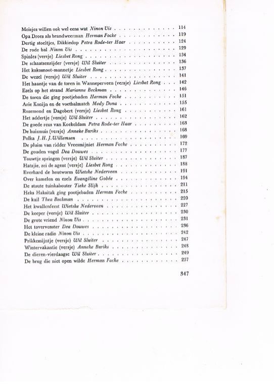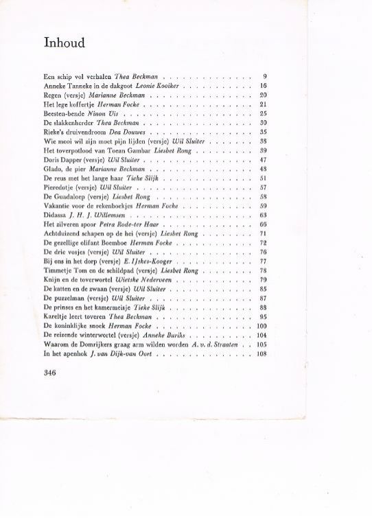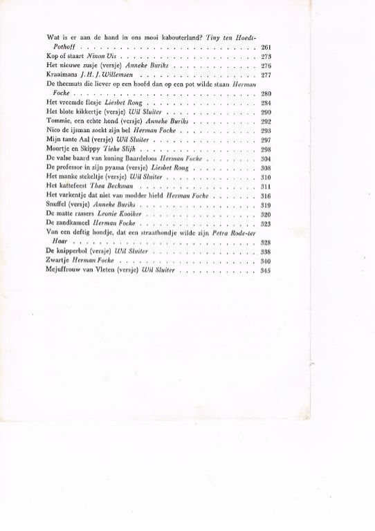 Uitg. Cantecleer. Eerste bijdruk 1976. Gebonden. 348 pagina's. Dikte 4,7 cm. Het boek is aan de buitenzijde stevig gehavend. De rugband is weg. De voorkaft hangt aan een gescheurd schutblad. De achterkaft ligt los. Pagina 339 – 348 (plus een blanco schutblad) ook. Voor- en achterkaft hebben gebruikssporen. De rest van het boekblok zit nog stevig en netjes in elkaar. Als ik goed heb geteld zijn er 89 korte verhalen, af en toe geïllustreerd met tekeningen. In goede staat zou dit boek ca. € 20,-- kosten. Nu voor € 2,50. Verzendkosten vanaf € 5,--.