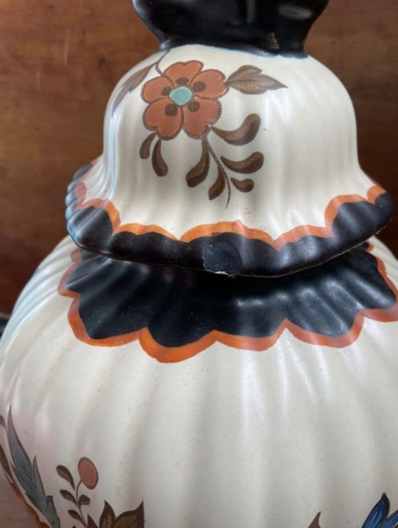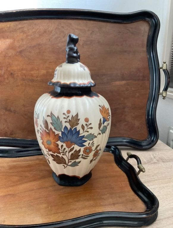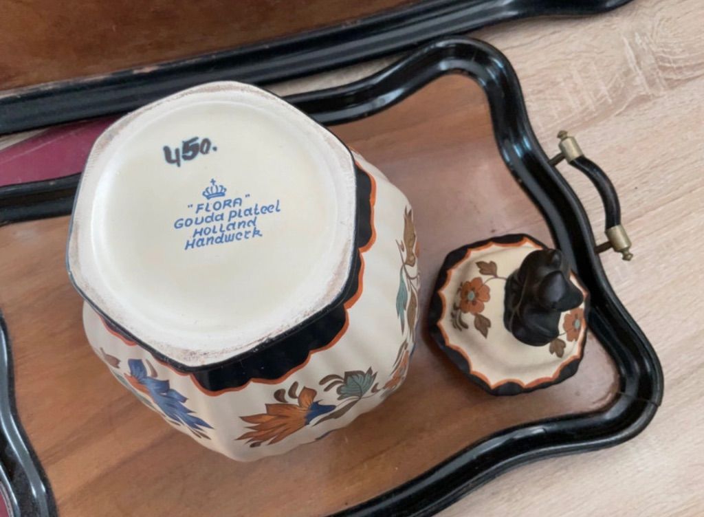 Mooie vintage Goudse aardewerken "Flora"  dekselpot genummerd 450  in goede staat, (alleen bij de deksels is er een chipje af, ziet foto’s) daterend uit de jaren 1970.