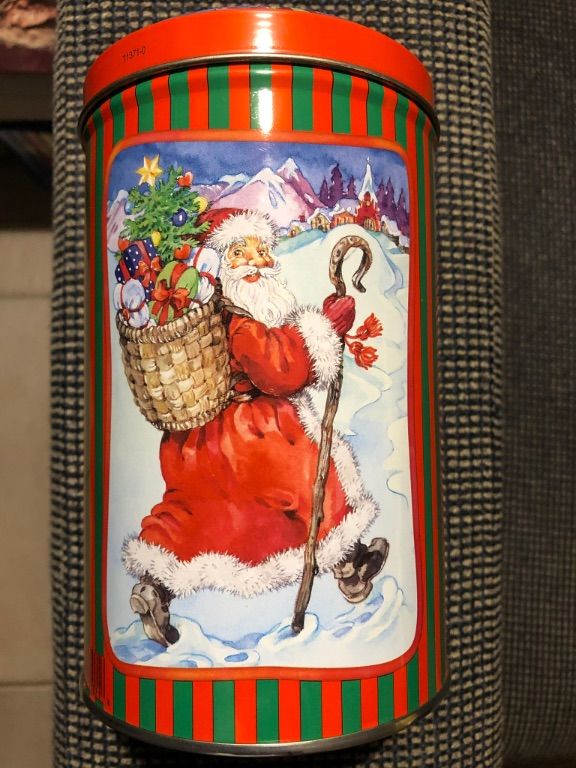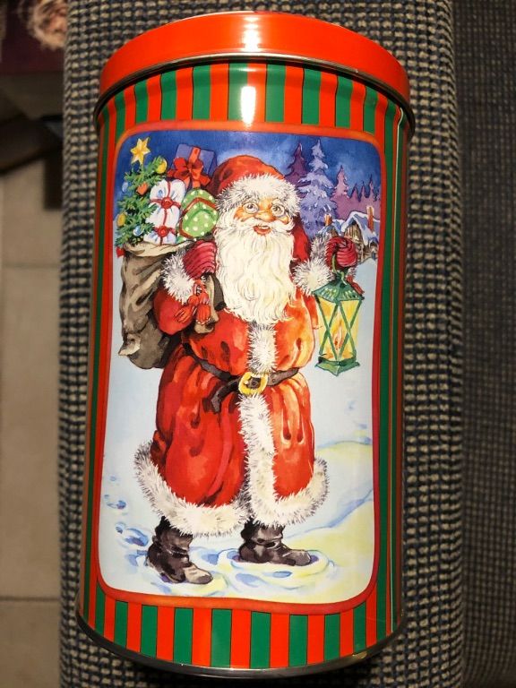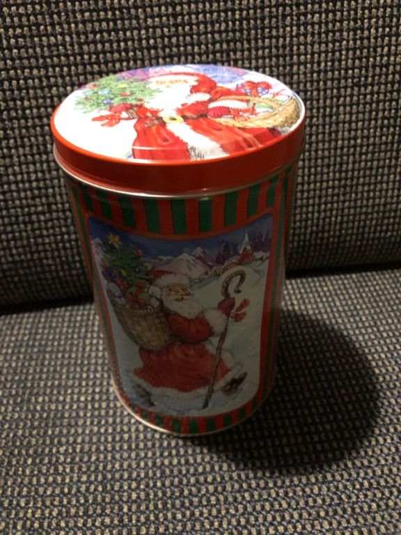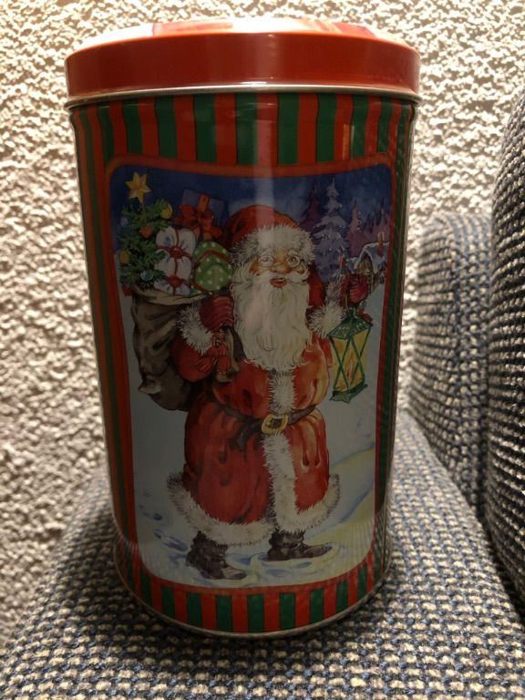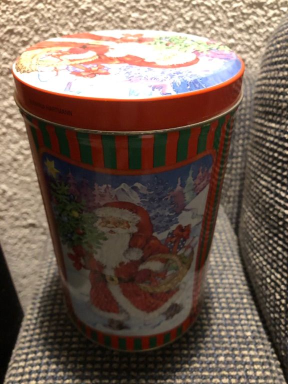 Kerstman bus met op de bus en op de deksel illustraties van Susanna Hartmann.