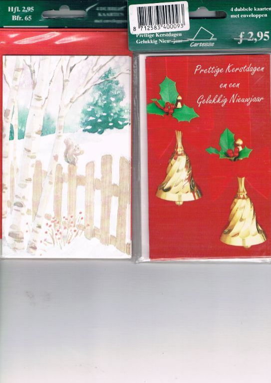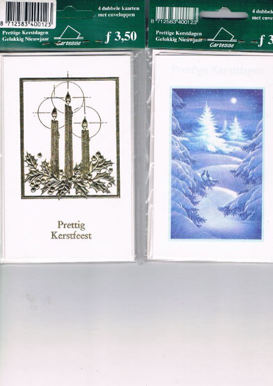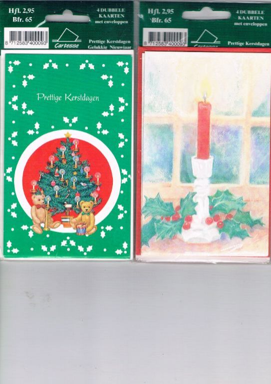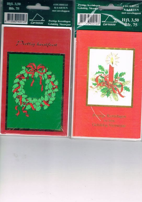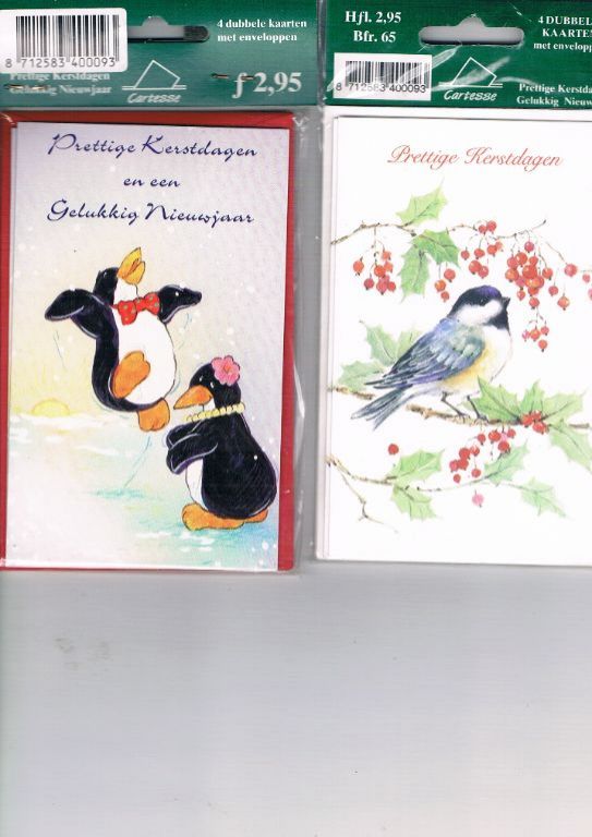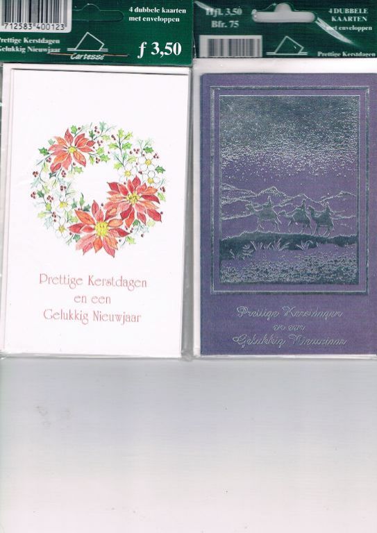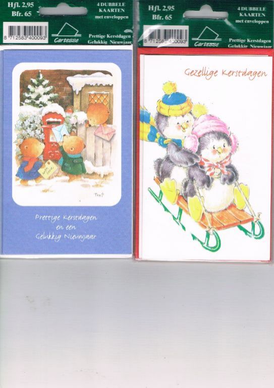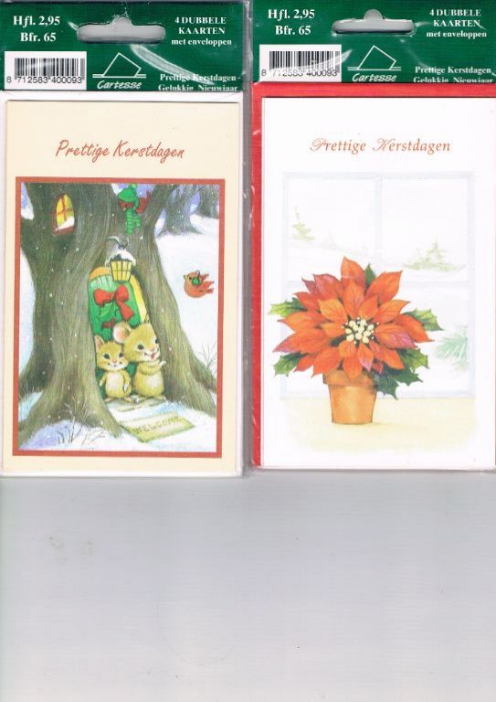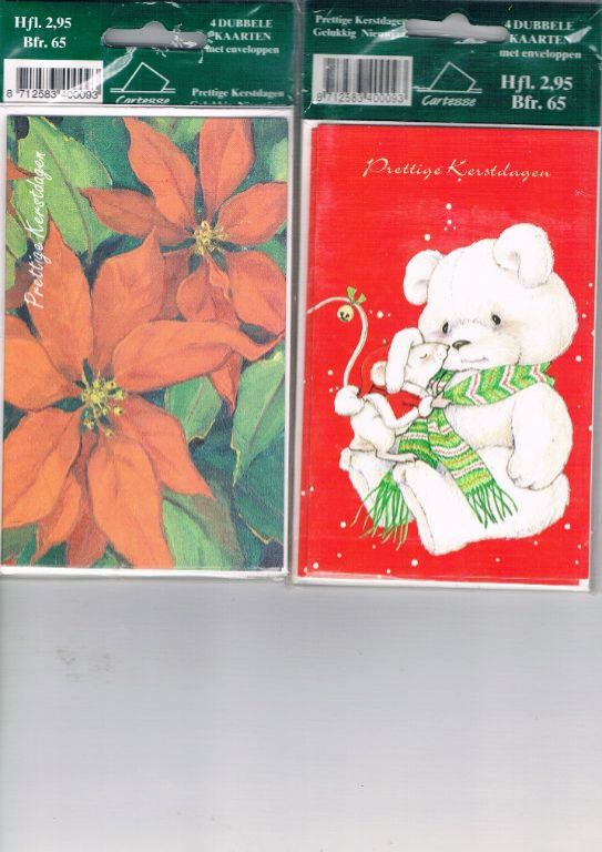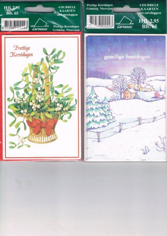 Er zijn mapjes van FL 2,95 (€ 1,34) en van FL 3,50 (€ 1,59). Ze mogen allemaal weg voor € 1,-- per mapje. De gewichten kunnen variëren van ca. 31 tot 36 gram. De afbeeldingen betreffen diverse huisjes met sneeuw, diverse kaarsen, figuren op kamelen, vogeltjes, beertjes, pinguïns, diverse diertjes, bloemen, kerstmannen, planten, bloemen, teveel om op te noemen.
