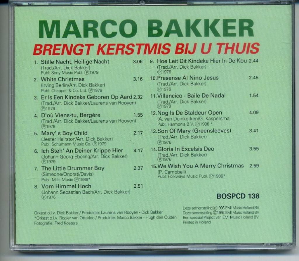 Marco Bakker Brengt Kerstmis bij u thuis CD 1993 ZGAN