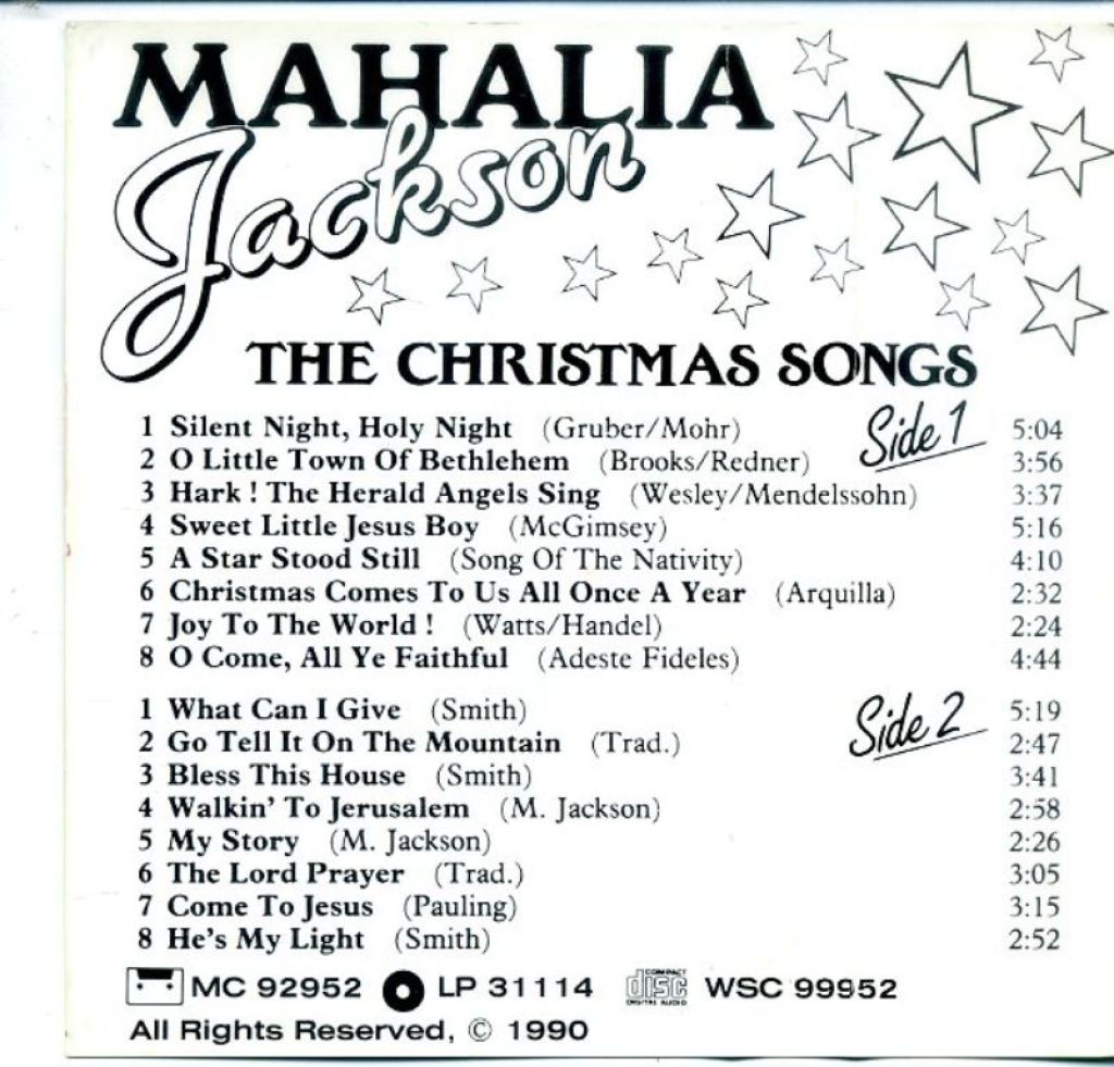 Mahalia Jackson The Christmas Songs 15 nrs cassette 1990 ZGAN