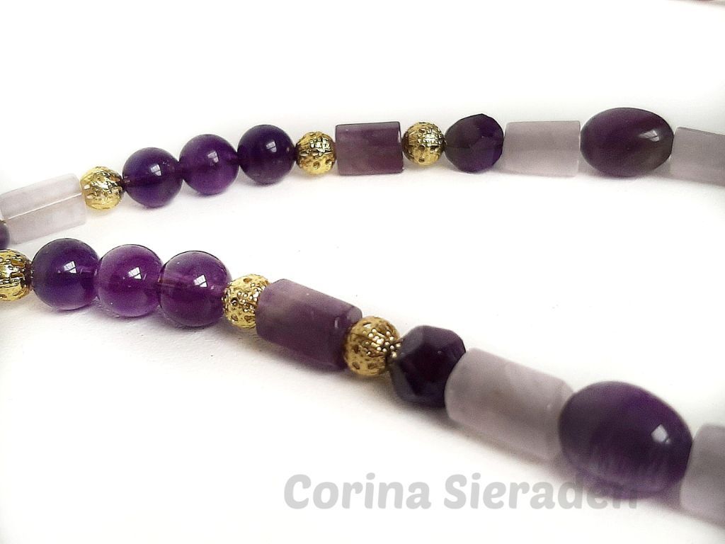 CORINA SIERADEN AANBIEDING Feestelijke ketting van facetgeslepen agaat, amethyst, facetgeslepen amethyst, obsidiaan, facetgeslepen obsidiaan en tibetaans zilver, met prachtige hanger van zwarte agaat met paars accentje. ...