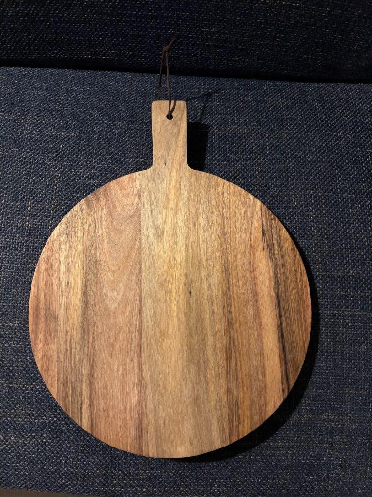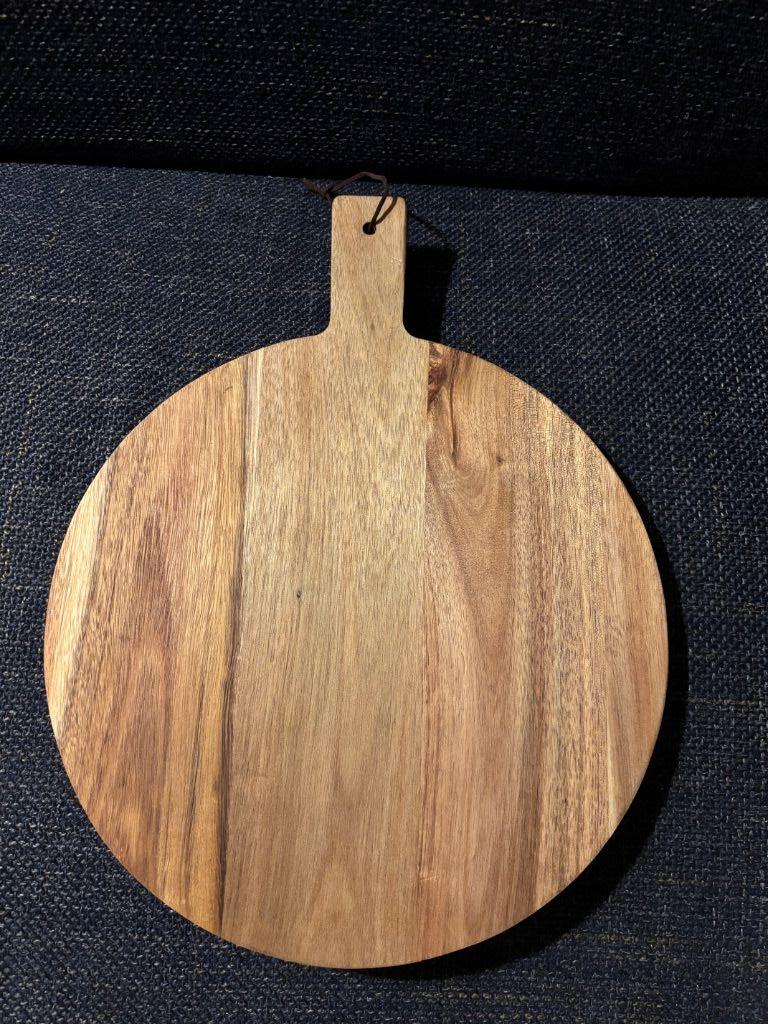 Houten serveerplank borrelplank rond 30 cm met handgreep