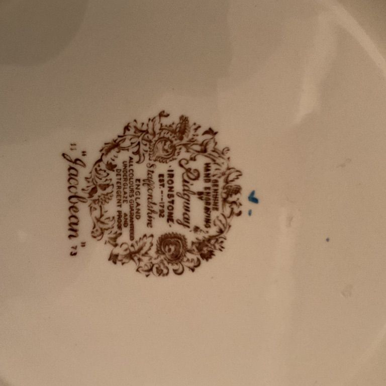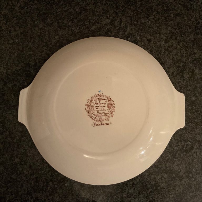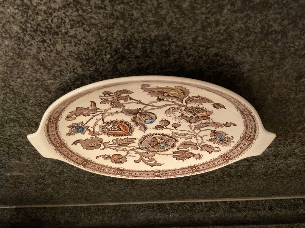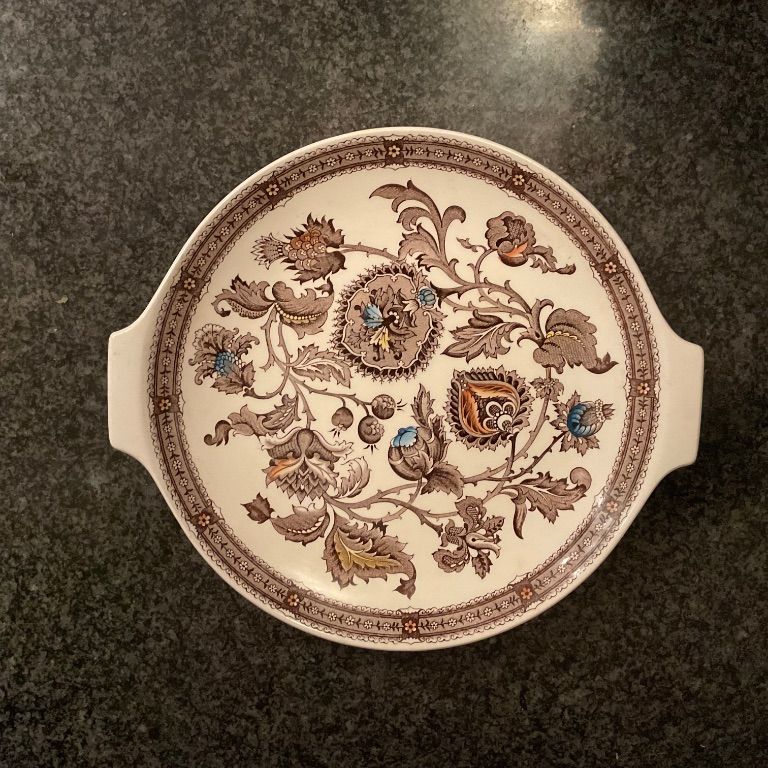 Vintage Ridgway Ironstone bord / schaal met kleine “handgrepen” in het Jacobean patroon.