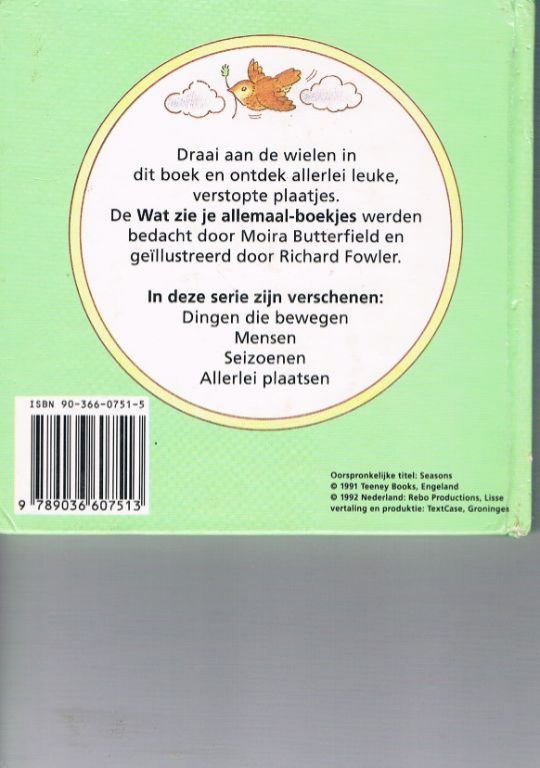 Uitg. Rebo. 1992. Hardcover boekje met 8 licht kartonnen pagina's. De schutbladen maken ook deel uit van het verhaal. Formaat ca. 15 x 15 cm. In de pagina's zit een draaischijf, die de situatie op de pagina doet veranderen. Zo goed als nieuw. Een enkel hoekje heeft een deukje, wellicht door transport. Dikte 7 mm. Gewicht 119 gram. Verzendkosten vanaf € 3,64. Prijs € 2,95.