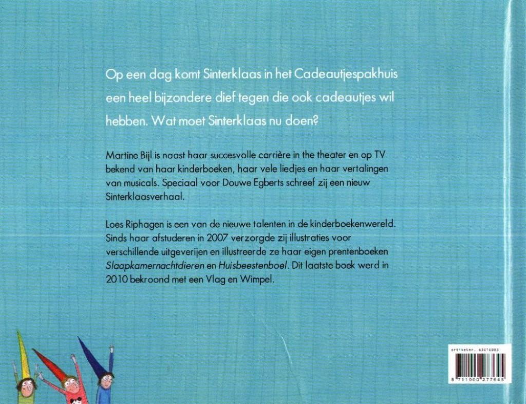 Fijn prentenboek in oblong formaat met een geestig en origineel sinterklaassprookje over een kabouter die op dievenpad gaat in het cadeautjespakhuis van Sinterklaas.