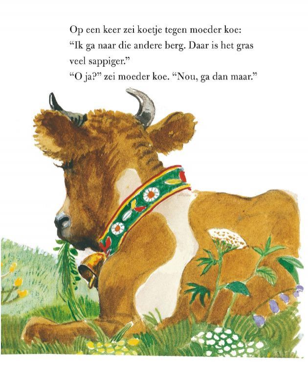Het Gouden Boekje over de koe die over de berg ging omdat daar het gras veel sappiger is.