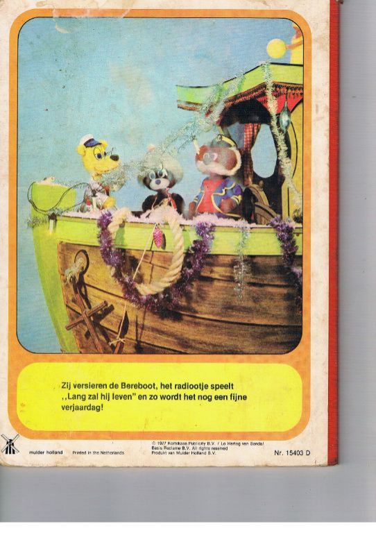 Uitg. Mulder. 1977. Geschreven door Lo Hartog van Banda. Met kleurenfoto's van de animatiefiguren. Het boek is gebonden en bestaat uit 6 kartonnen bladen (kaften inbegrepen), welke aan weerszijden bedrukt zijn. In de afgelopen 45 jaar zijn helaas wat gebruikssporen opgetreden, welke echter voor de liefhebber geen onoverkomelijk bezwaar zullen vormen. Dikte 7 mm. Gewicht 185 gram. Verzendkosten vanaf € 3,95. Voor dit collectors item vraag ik € 4,50.