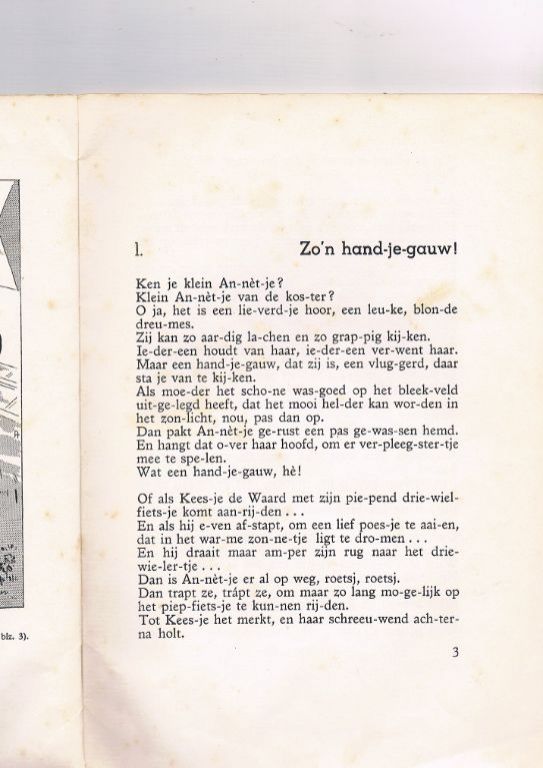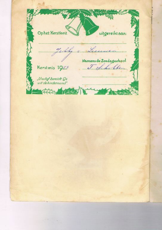 Uitg. Meinema. Tweede druk. Jaartal niet vermeld. Op de achterzijde van de voorkaft zit een etiket geplakt i.v.m. de uitreiking op de Zondagsschool met Kerstmis 1953. SC. 39 pagina's. In vrij goede staat met slechts lichte gebruikssporen. Gewicht 73 gram. Verzendkosten vanaf € 3,95. Prijs € 4,50.