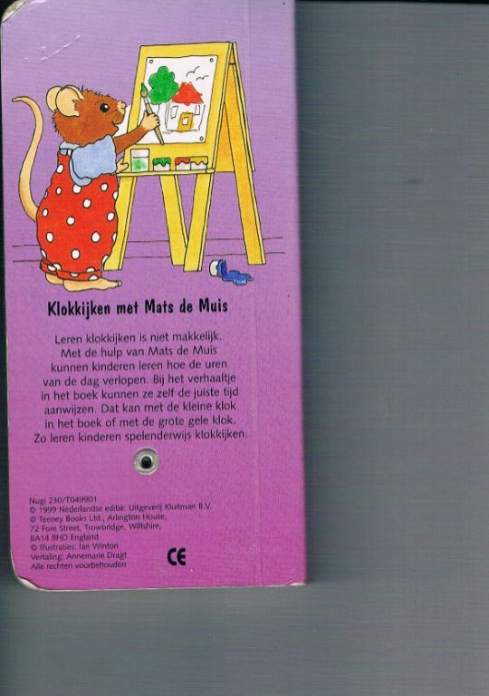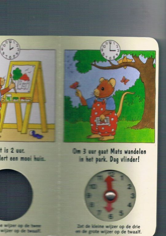 Uitg. Kluitman. 1999. Formaat 9 x 18,2 cm. Met een rond gat, waarin een soort klok. Kartonnen boekje bestaande uit 10 kartonnen bladen (dus 20 pagina's) inclusief kaften. Op alle bladen gekleurde afbeeldingen met teksten. Ziet er vrij netjes uit. Heel licht kreukje op achterkaft linksboven. Dikte 1,6 cm. Gewicht 165 gram. Verzendkosten vanaf € 3,95. Prijs € 4,50.
