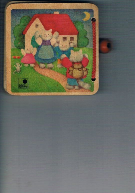 Uitg. en jaartal onbekend. Op de achterzijde lees ik in kleine letters een Duitse tekst; dus het zal daar wel vandaan komen. Formaat 10,3 x 10 cm. Voor de afwisseling is dit een houten boekje. Vier houten bladen, inclusief kaften, dus acht pagina's. Op de binnenbladen zie je transportmiddelen, Geen teksten. Om het geheel bij elkaar te houden heeft men een koord gebruikt, waarvan de einden verstopt zijn in een bolletje. Ziet er netjes uit. Ik zie geen beschadigingen. Dikte 1,8 cm. Gewicht 128 gram. Verzendkosten vanaf € 3,95. Prijs € 5,50.